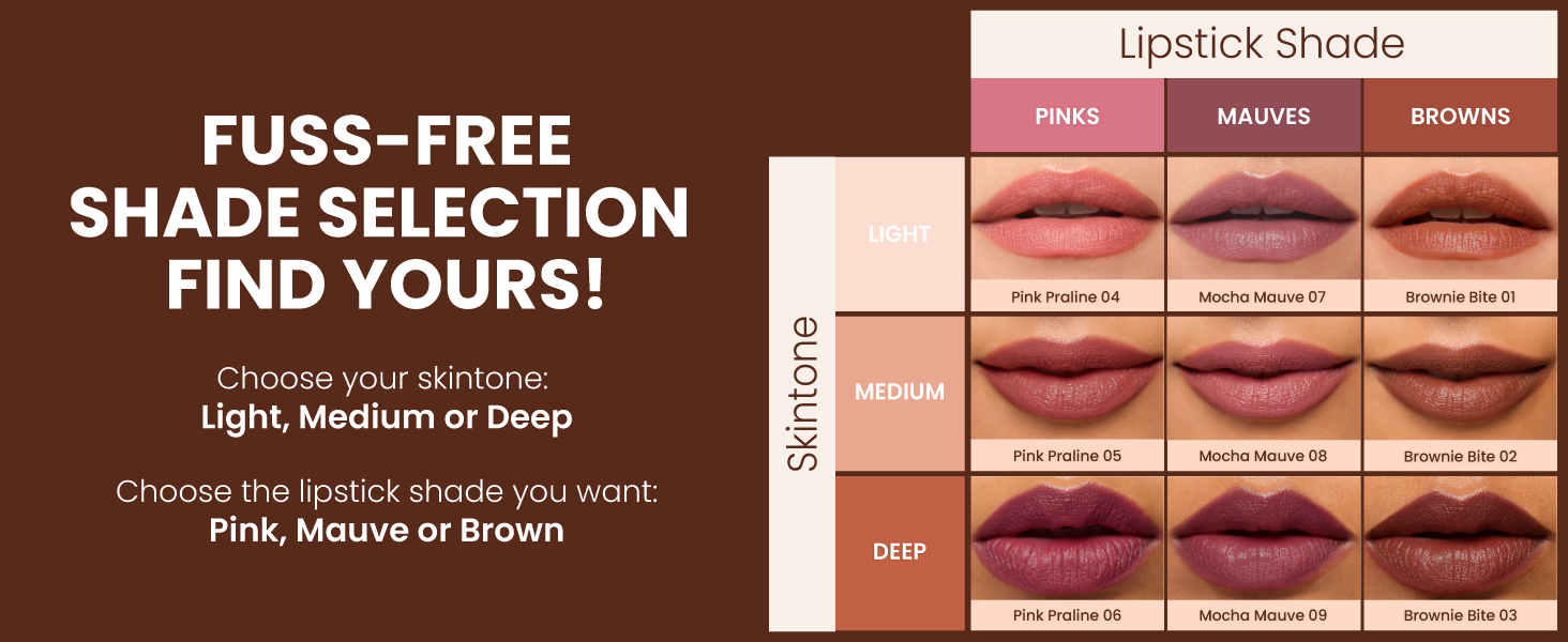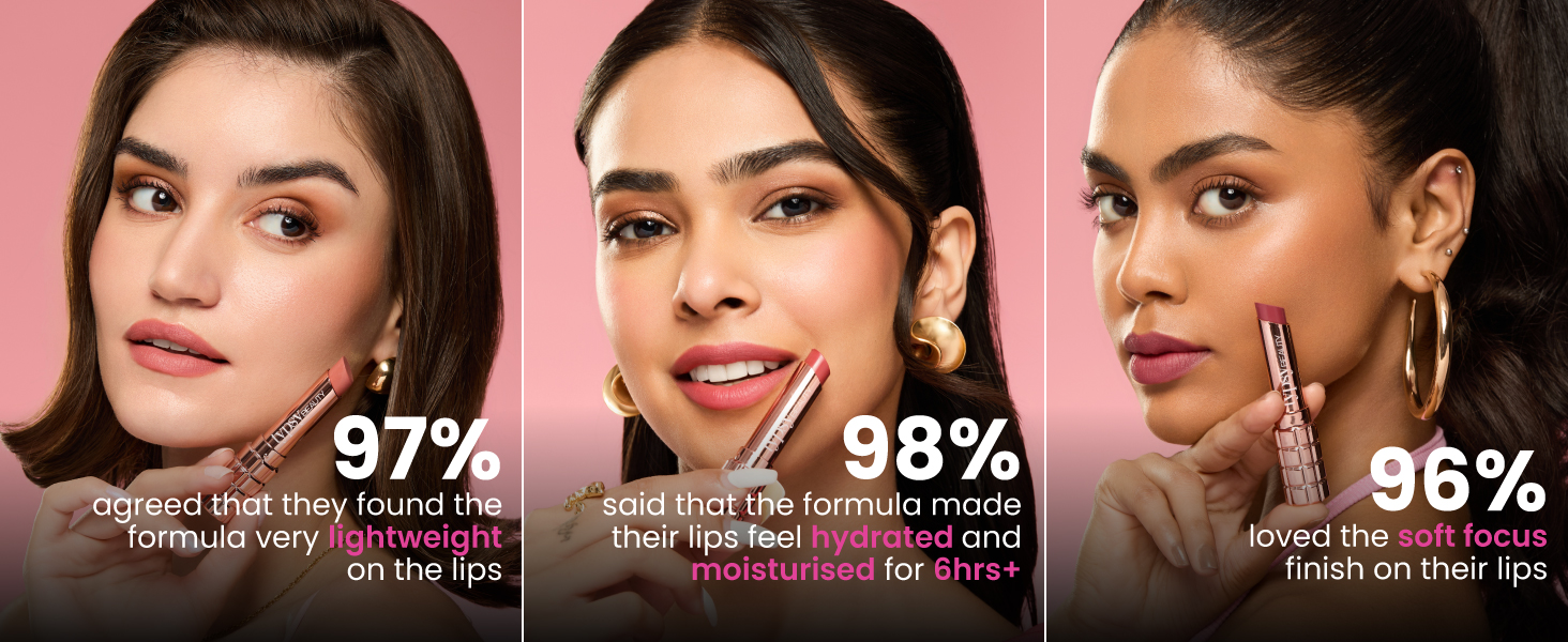 The collection includes thoughtfully curated Nude and Bold shades. Each shade family features Light, Medium, and Deep options so every Indian skin tone finds the right match.